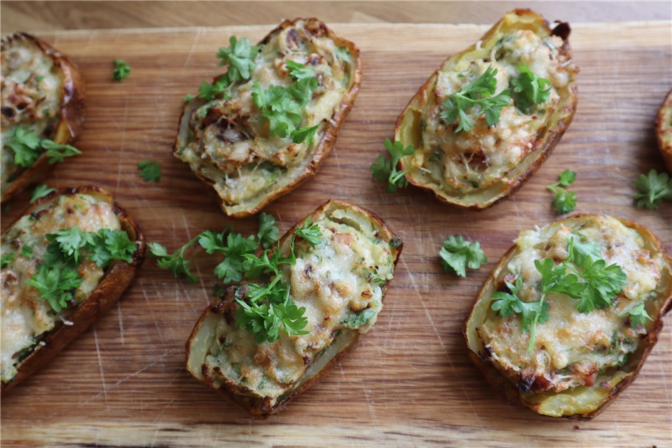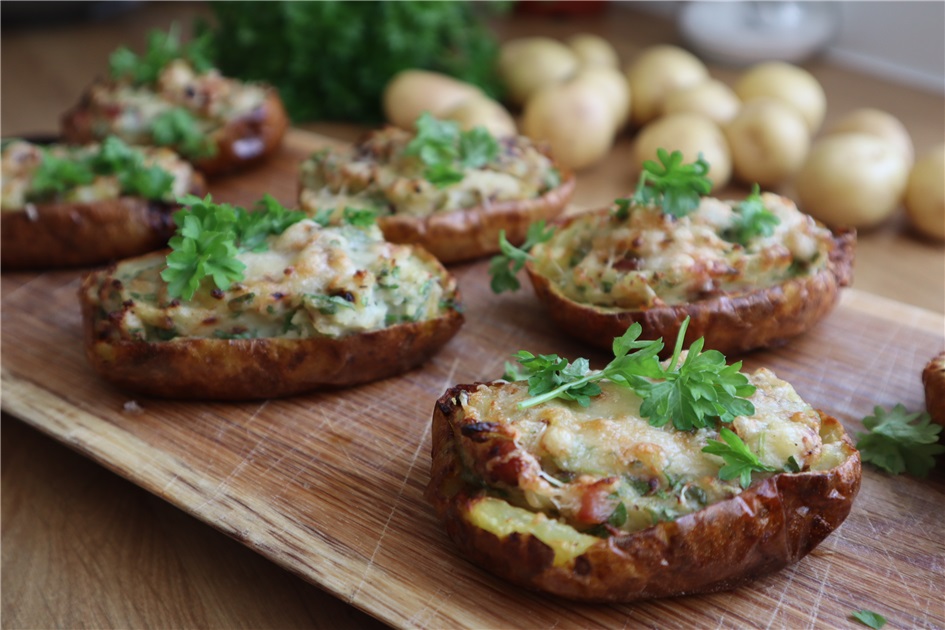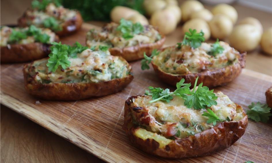 Når det skal være lidt ekstra lækkert til hverdag, eller gæsterne skal forkæles, er de dobbeltbagte kartofler helt perfekte. De kan varieres efter smag og både bruges som tilbehør eller som selvstændig hovedret sammen med en sprød salat.